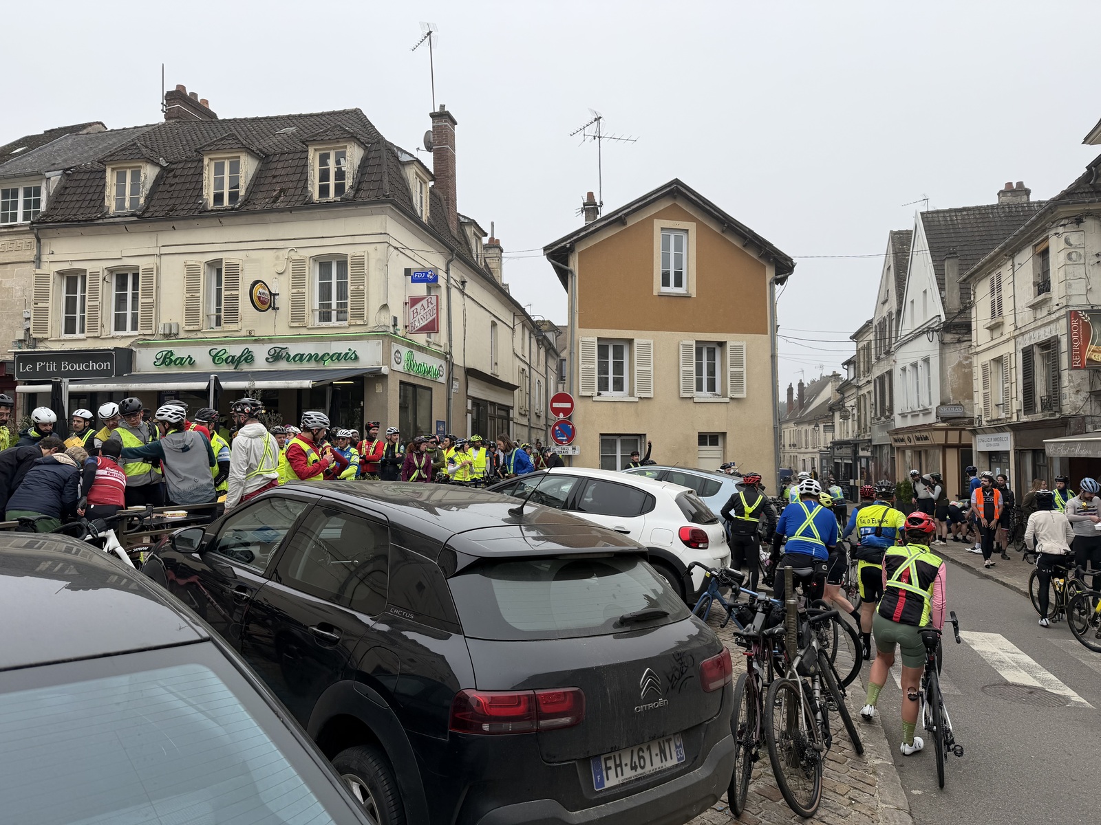 Ce dimanche 8 mars nous nous sommes donnés RDV à 6h à Maisons-Laffitte afin de se rendre en une heure au départ Porte de Clichy. Nous sommes 7 de l'USML Cyclo parmi les 600 prêts à affronter ce BRM 200 classique de début de saison. Après l'enregistrement c'est parti dans un brouillard épais qui durera jusqu'au début d'après-midi. On se retrouve par moments en terrain connu sur les routes du Vexin que l'on pratique régulièrement dans les sorties USML Cyclo. Compte tenu du grand nombre de participants il y a toujours des cyclos en vue et une excellente ambiance. Et puis le retour avec le soleil qui emerge gentiment donne le niveau d'énergie pour maintenir la cadence. Le profil du parcours n'est pas trop ardu ( environ 1900m D+) avec beaucoup de petites bosses relativement courtes. Et puis les 3 arrêts pour tamponner permettent de souffler un peu.