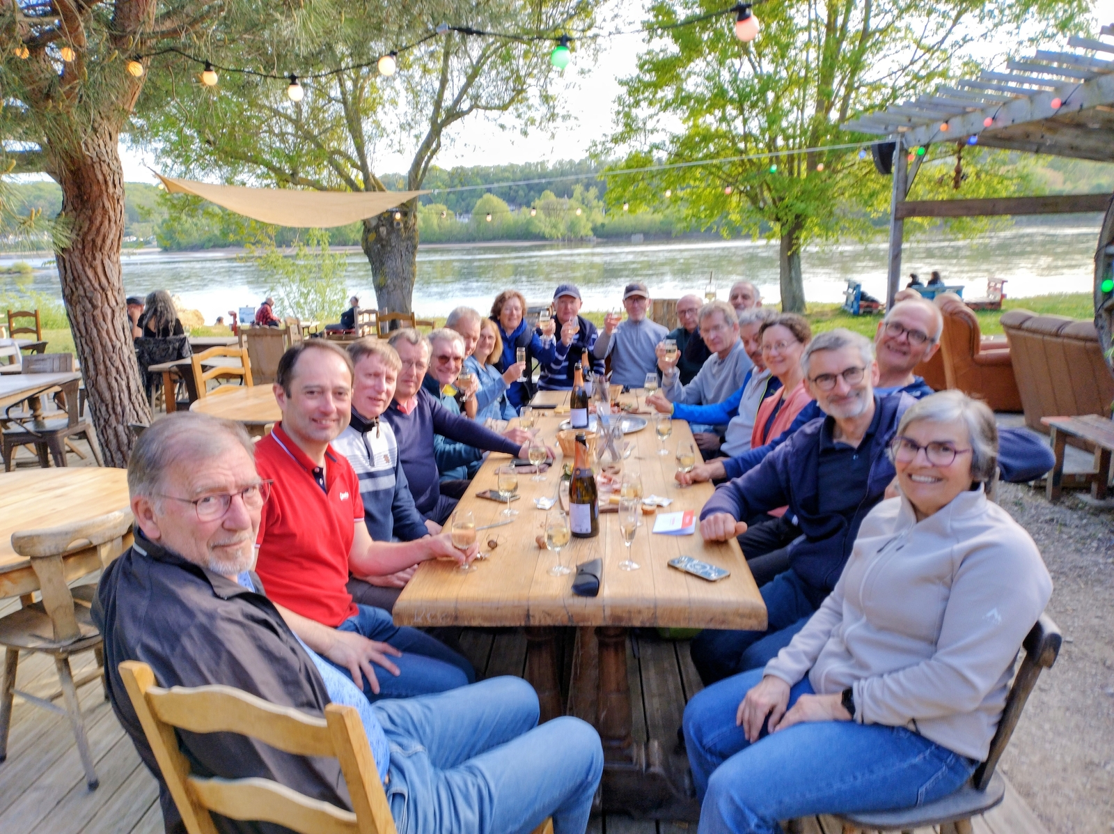 ✅dernier pot de l'amitié à la guinguette de St Martin de la Place en bord de Loire au soleil couchant